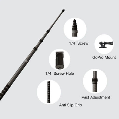 پایه MT-65 مونوپاد مخصوص دوربین‌های اکشن مانند GoPro یا Insta360 است که با ساختار 5 بخشی از فایبر کربن سبک و مقاوم ساخته شده، این پایه در حالت بازشده تا 3 متر ارتفاع می‌گیرد و پس از جمع‌شدن طولی در حدود 48 سانتی‌متر دارد، حداکثر وزن قابل تحمل توسط آن 300 گرم و وزن کل آن 240 گرم است.