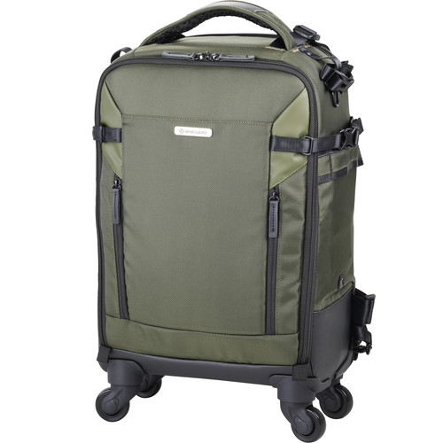 کیف کوله پشتی چرخ دار ونگارد Vanguard VEO SELECT 55BT مناسب برای یک یا دو دوربین DSLR به همراه 4 تا 5 لنز اضافی ، به همراه فلاش ، یک دوربین به همراه لنز 300 میلی متر ، دارای فضایی برای لب تاپ تا سایز 13 اینچ ، تبلت تا سایز 9.7 اینچ ، دارای نگه دارنده سه پایه ، به همراه چهار چرخ جهت حمل و نقل آسان ، به همراه کاور باران